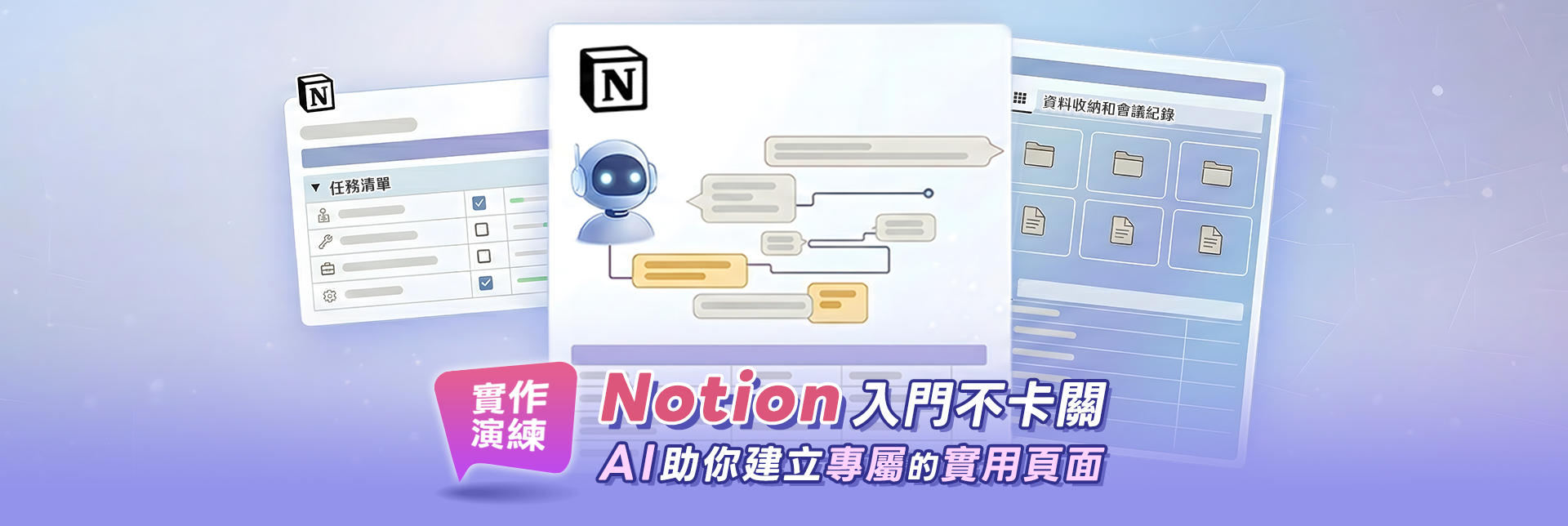 許多人「其實很需要 Notion」,卻因為一開始看到太多模板、資料庫與教學影片而卻步。本課程專為 Notion 初學者設計,從最基本的「為什麼你需要一個系統」開始,引導學員建立正確觀念,並協助學員先完成一套「能解決當下問題」的工作整理架構,搭配 AI 協助減少輸入與設計負擔。同時透過反向示例,清楚說明新手最常犯的錯誤(如:一開始就做大型資料庫、照抄模板卻無法使用),讓學員第一次使用 Notion 就走在正確路徑上。